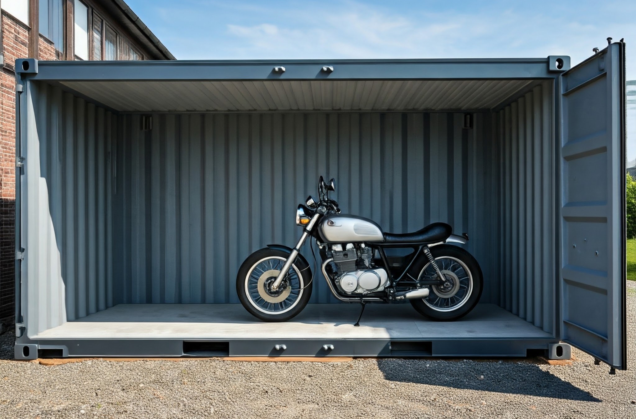 - 40’ (40’ x 8’ x 8.6’) – Best for larger vehicles, multiple motorcycles, or extra workspace.